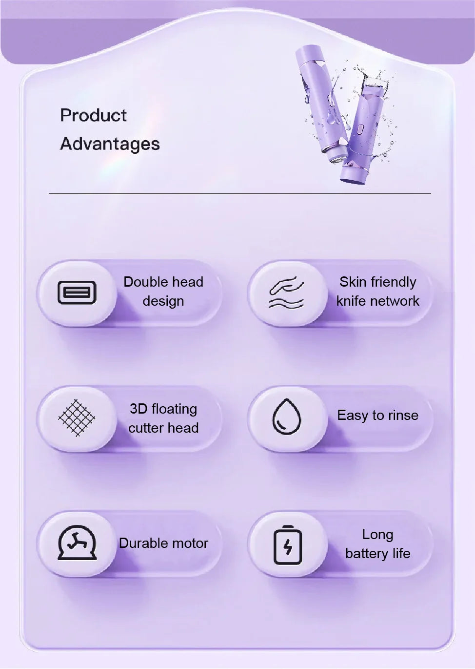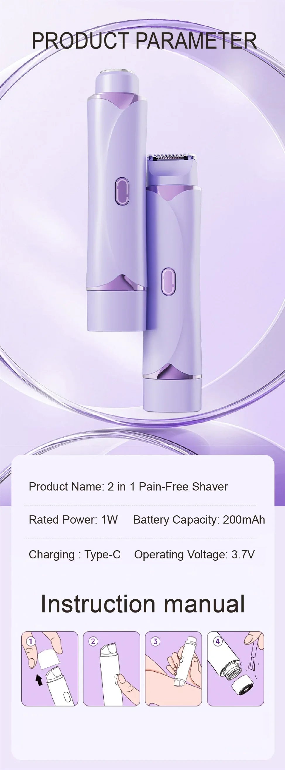 Experience a new era in personal grooming with this innovative precision trimmer designed specifically for women. This cutting-edge tool seamlessly combines efficiency and gentleness, ensuring that every grooming session is quick, effective, and comfortable. With its sleek, ergonomic design, it fits perfectly in your hand, allowing you to maneuver effortlessly around every curve and contour of your body. This grooming essential is perfect for busy women who value their time but still want to maintain a polished appearance. Whether you need to tidy up your face, armpits, arms, legs, or delicate areas, this versatile trimmer delivers salon-quality results in the comfort of your own home. Say goodbye to the hassle of traditional shaving methods that can irritate sensitive skin, and welcome a gentler solution that keeps you feeling fresh and confident throughout the day. Key features include a non-irritating stainless steel blade that provides a close, smooth shave without the discomfort typically associated with other razors. Its 3D edge design adapts to your body's curves, ensuring precision with every stroke. Plus, the rechargeable battery with a capacity of 200 means you can enjoy long-lasting performance without the waste of disposable batteries, making it an eco-friendly choice that aligns with your health-conscious values. Imagine starting each day with the confidence that comes from effortlessly groomed skin. This trimmer not only enhances your appearance but also empowers you to take control of your self-care routine. Each use reduces the stress of grooming, allowing you to focus on what truly matters—looking and feeling your best as you navigate your busy life. In a market filled with grooming tools, this precision trimmer stands out for its thoughtful design and commitment to user comfort. Unlike traditional razors that can leave you with nicks and irritation, this product prioritizes your well-being, providing a reliable alternative that delivers high-quality results without the drawbacks. Elevate your grooming experience and embrace the confidence that comes with being perfectly prepared for any occasion.